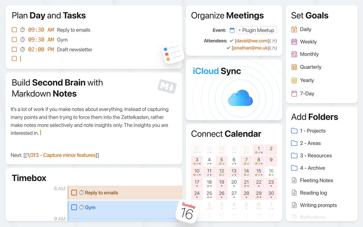 • 以任何你想的方式组织:从P.A.R.A.上的简单文件夹到Zettelkasten系统