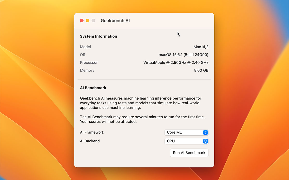 Geekbench AI for Mac 是一款Mac硬件综合性能AI基准测试工具,它使用现实世界的机器学习任务来评估AI的工作负载性能。Geekbench AI 测量您的CPU、GPU和NPU,以确定您的设备是否已为当今和未来的尖端机器学习应用做好准备。有需要的朋友可以免费下载使用一下。