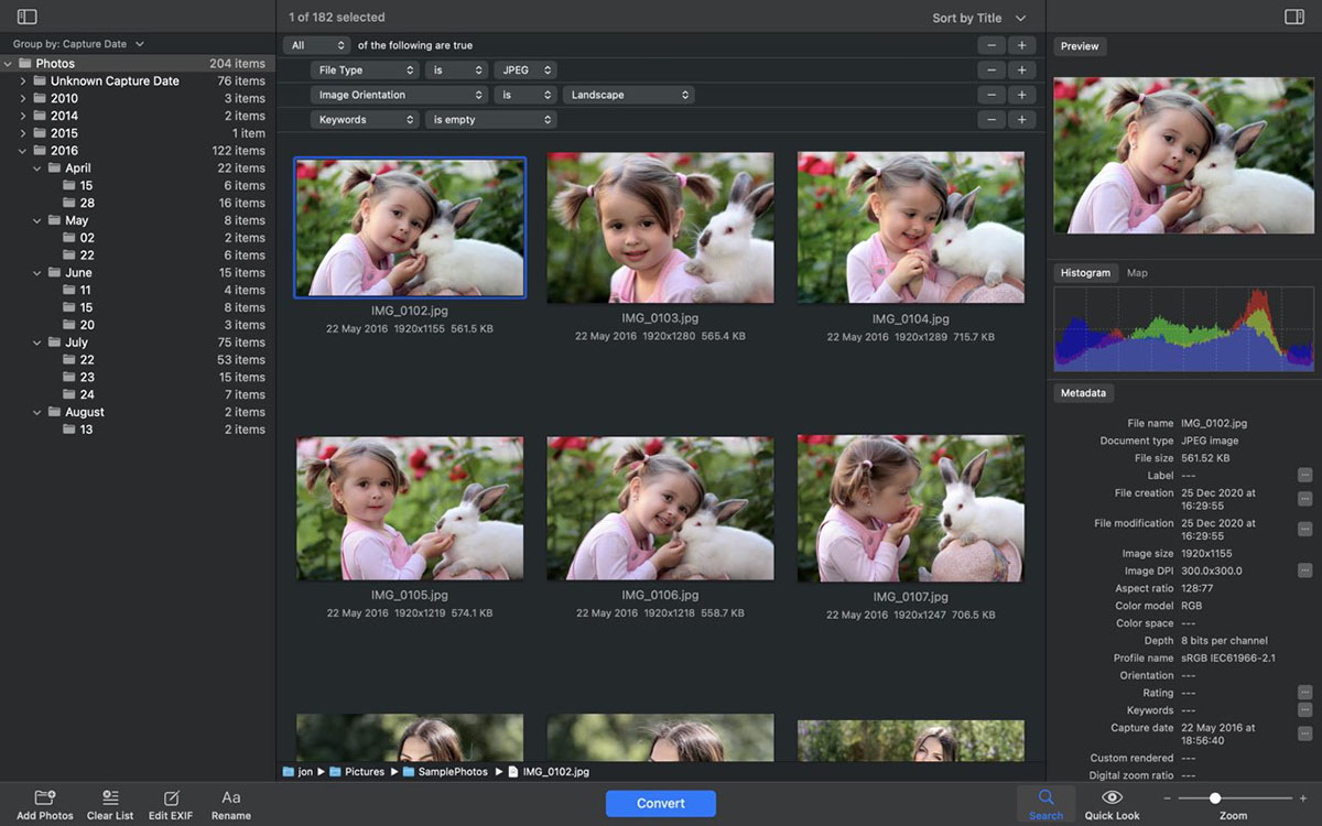 您可以为转换后的照片赋予有意义的名称,以“专业”的方式构建文件名——使用文本和标签:索引、捕获日期、原始名称、图像宽度、“查找和替换”等。此外,您可以在不进行任何转换的情况下重命名照片。