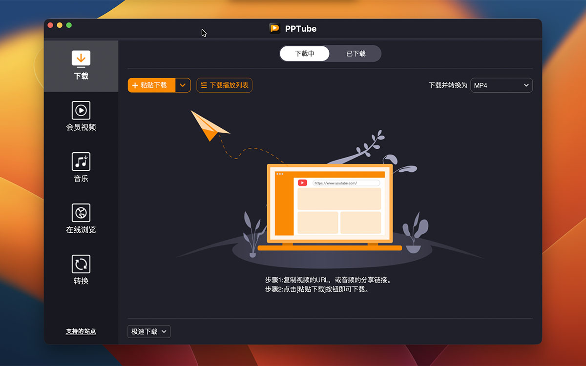 PPTube for Mac 是一款不错的网页视频下载工具,支持从10000多个视频/音乐流媒体网站无限下载1080p/4K视频。作为YouTube、Dailymotion、Facebook 和其他流媒体网站的强大高清视频下载器,PPTube高清视频下载程序提供了10倍的速度来批量下载高质量视频。此外,它还提供了一个内置浏览器,可以轻松下载视频和音乐,并将Youtube转换为MP4、MP3等格式。有需要的小伙伴们可以免费下载使用一下。