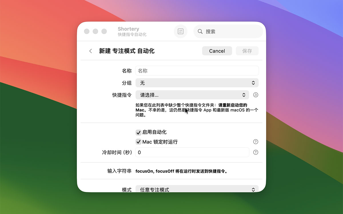 快捷指令可以由 Mac 上的各种系统事件和变化触发