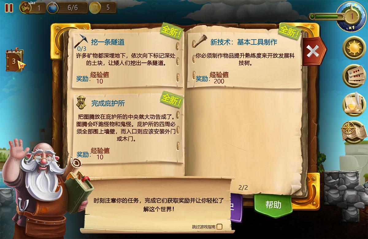 你指挥一个小型的矮人部落,并向他们下达命令:在特定的地方挖掘、攻击敌对生物、建造房屋和其他建筑。你需要照顾你的矮人——及时喂养他们,提供衣物,并在与世界中敌对生物作战时用魔法帮助他们。游戏开始时,你只有一个矮人,随着经验的积累,你将获得更多的矮人。