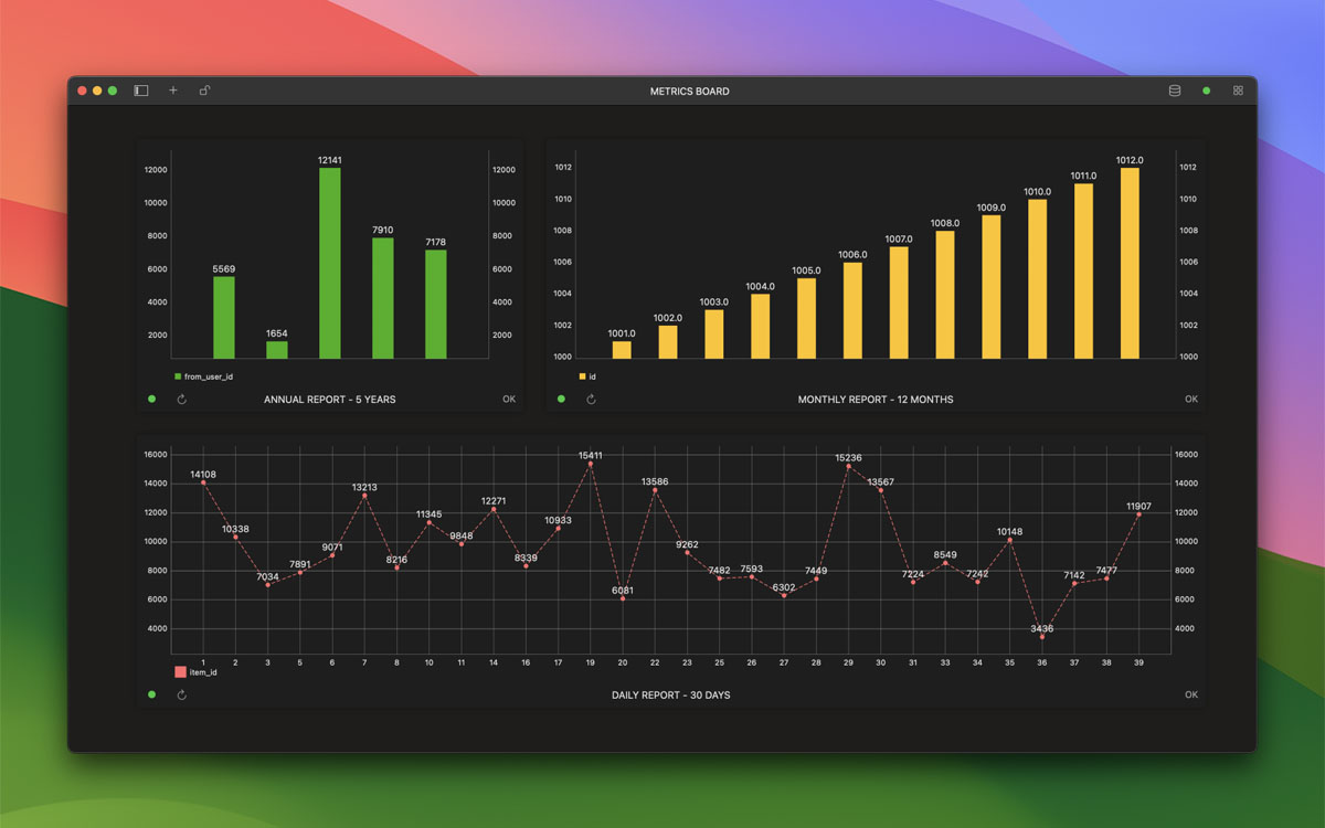 使用 TablePlus,您可以快速而简单地构建内部仪表板。