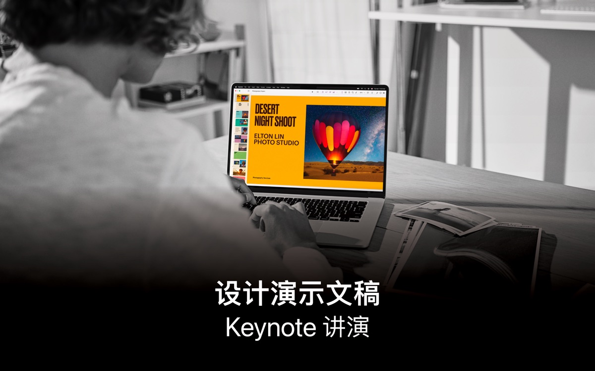 在远程提案、播放演示视频、进行讲座时,你可以通过画中画的形式,出现在幻灯片上的窗口中。通过 Mac、iPad 或 iPhone 的内置摄像头即可添加实时视频,甚至还能移除或更换背景,营造戏剧性的效果。而在 Mac 上进行讲演时,还能加入 iPhone 或 iPad 屏幕上的实时画面,来展示各款 app。