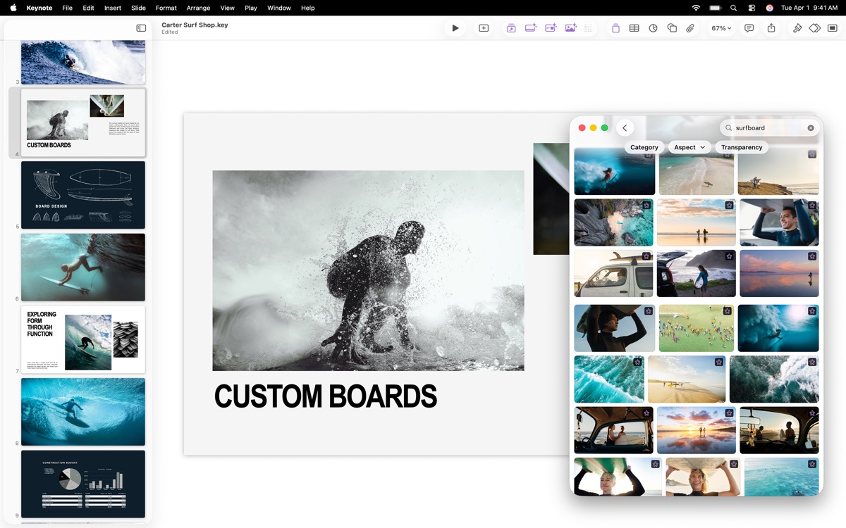 Keynote for Mac 是由苹果公司开发的一款专业的幻灯片演示文稿创建工具。它凭借强大的工具和炫目的特效,可让你轻松制作绚丽夺目、令人难忘的演示文稿。你还可以使用 Apple Pencil 在你的 iPad 上绘制图表或插图,让幻灯片更加生动。Keynote 讲演能帮你将惊艳的创意,化作同样惊艳的提案。来尽情施展才华吧,让人们为你喝彩。有需要的小伙伴可以下载体验一下。
