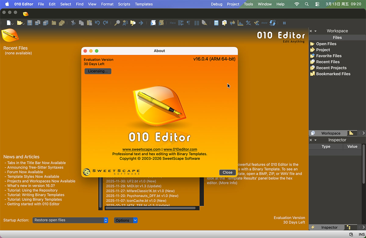 010 Editor for Mac 是一款专业的文本编辑器和十六进制编辑器,旨在快速轻松地编辑计算机上任何文件的内容。该软件可以编辑文本文件,包括Unicode文件、批处理文件、C/C++、XML、JavaScript等,但010 Editor擅长编辑二进制文件。二进制文件是一种计算机可读但不可读的文件,十六进制编辑器是一个程序,允许您查看和编辑二进制文件的单个字节,高级十六进制编辑器还允许您编辑硬盘驱动器、软盘驱动器、内存键、闪存驱动器、CD-ROM、进程等的字节。